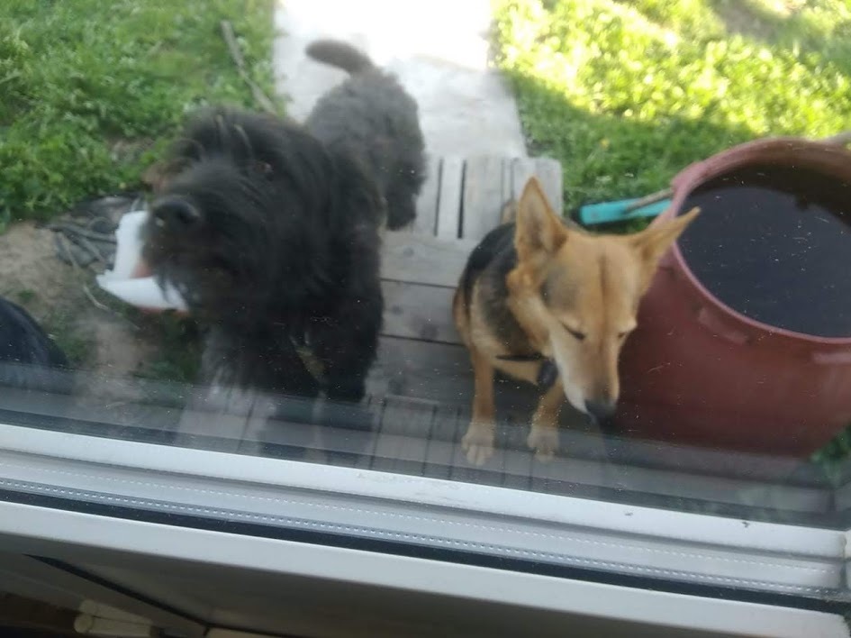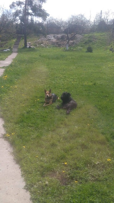 Даник с Юлией и Тусей переехали на все лето на дачу. Даня сразу взял периметр под охрану - исправно лает, даже полез есть незнакомого дядьку, зашедшего на участок. Так что Даник - настоящий охранник территории.
