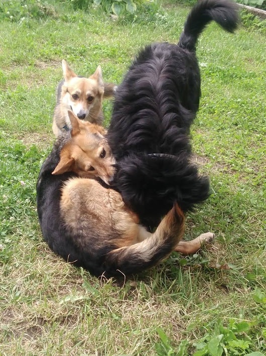 Всем привет от Даника! Он наслаждается дачной жизнью - ходит на родник за водой, принимает на своем участке гостей. На днях приезжали погостить два корги. Даник валял, его валяли, никто никого не съел.