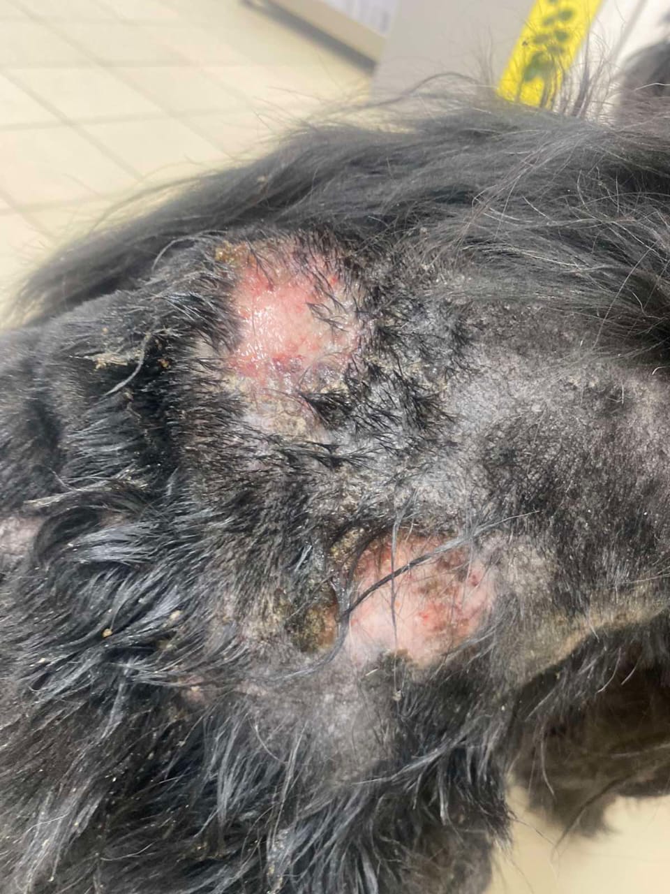 Собака под чьей опекой? В Перми у нас Наталья-ФилДана, готова помочь. По-хорошему, надо мыть и брить наголо и домашнюю теплую передержку с медуходом - мазать раздражения.