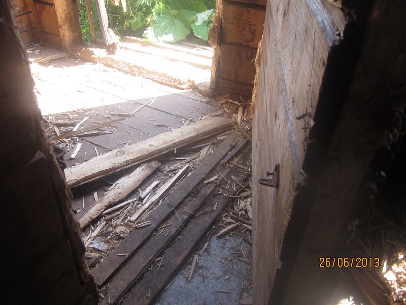 Баррикада из дров у калитки- это мы пытались хоть как-то оставить его на той половине... Пролез...