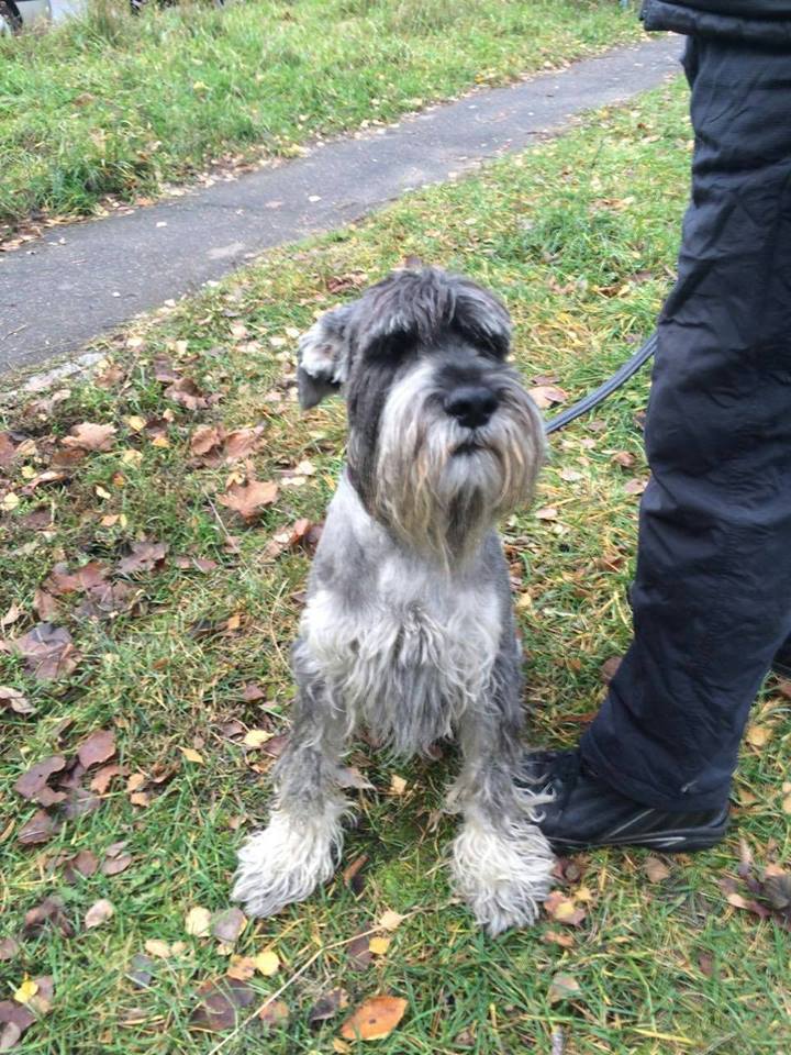 В связи с тем, что пожилые хозяева не справляются, ищет новый дом кобель миттельшнауцера окраса перец с солью Валли. Дата рождения 23.09.13. Выраженный пищевик. Активный, знает элементарные команды. Собака с родословной. Хвост купирован, уши натуральные, но лежат некорректно. Кормится натуралкой. С собаками адекватен, с детьми - был опыт с прходящим в гости 4-летним -все нормально. С котами не жил. Владелец суки-матери брал себе в дом иногда - у него проблем с послушанием не было никаких. С пожилыми хозяевами считает себя главой семьи
