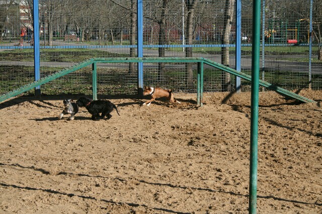 Сегодня на площадке поиграли со двухлетним кобелем бассенджи. Никаких конфликтов.