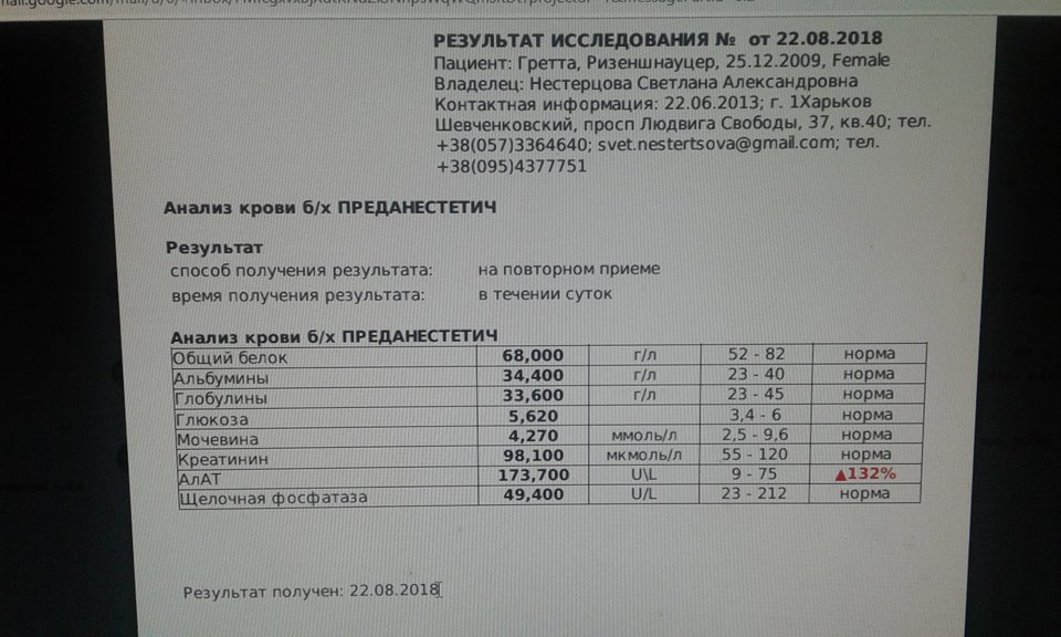 Спасибо за выложенные анализы. АСТ у Гретты было в пределах нормы. Перечень показателей согласован с Ириной-zver.