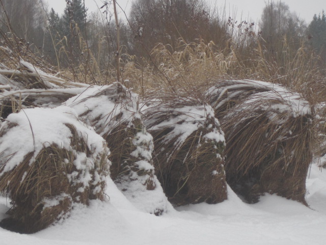 ))) сколько я ни показывала это фото , так никто и не опознал на нём обычные болотные кочки...))) и не мудрено сама не сразу сообразила что за истуканы такие на нашем болоте)))А снежные мочёные колобки...мммм!))))