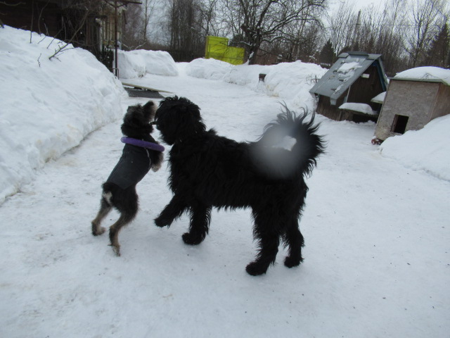 Сегодняшнее утро- выпускаю собак- Тёма вылетает как из пушки. Генералу одеваю мундирчик...генералу он не нужен, но он милостиво позволяет мне его одеть. Шкиперу нужно подтверждение что я пойду следом-"сейчас иду!". А Лёшик сидит и не идёт...?????Лёш, гулять идём!- сидит...???? Ну ... все одно выведу...гулять -то надо, но сначала- беру жилетку (на фотографиях её видно-тёмно-синяя - надеваю на Лёшика , пока одеваю Лёшик пытается достать меня языком. Оделись...и Лёшик сам выскакивает на улицу!?