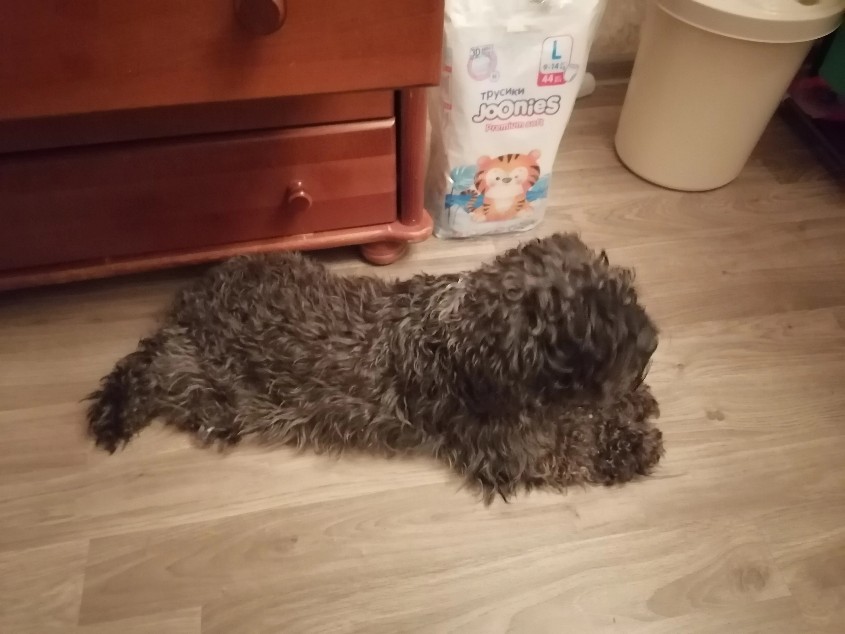 Пуфик идеальный домашний товарищ! Дома спокоен, не лает (лай я от него не слышала никогда!), ни с с кем не ругается, за кошками не бегает. На прогулке активен, с дамами галантен, с кобелями понюхается и бежит по своим делам. В лесу гуляет без поводка, послушный. Ест кашу с консервами, но сушкой интересуется тоже.
