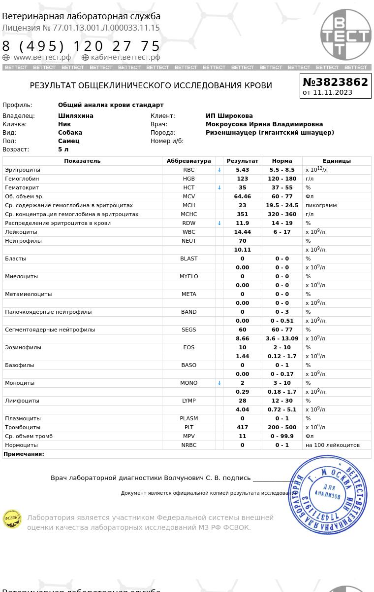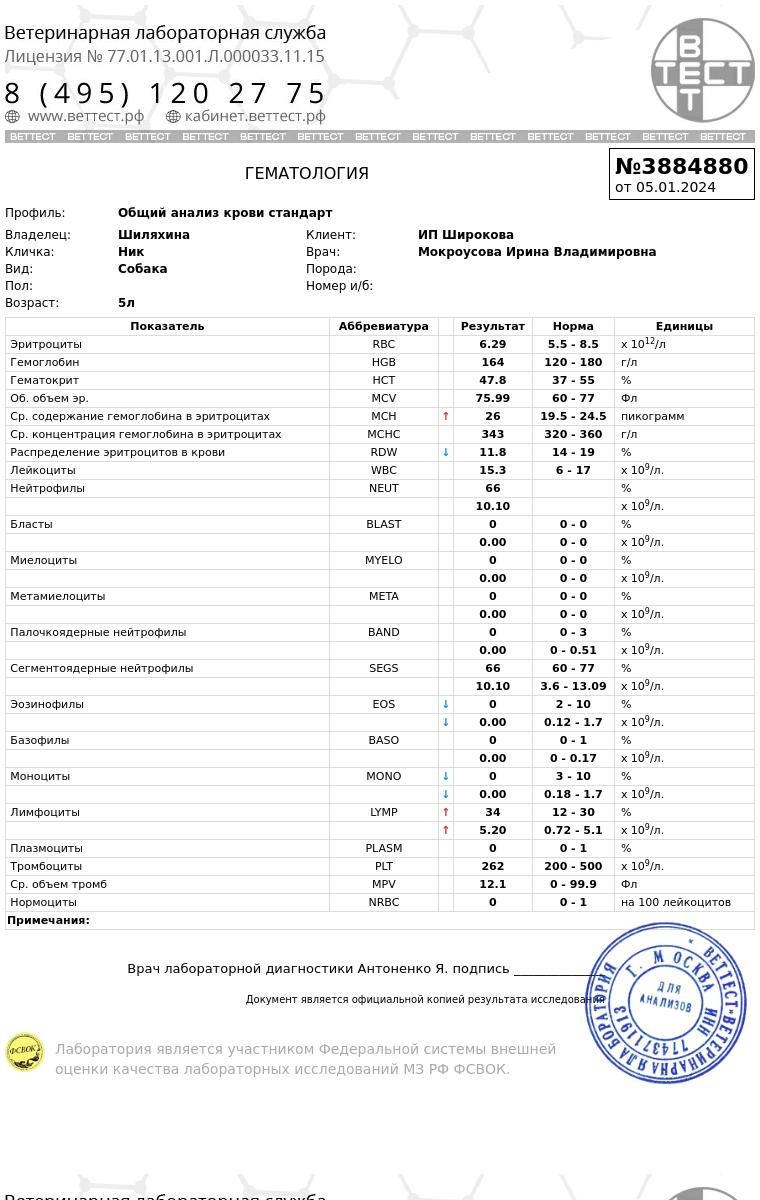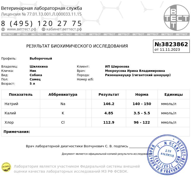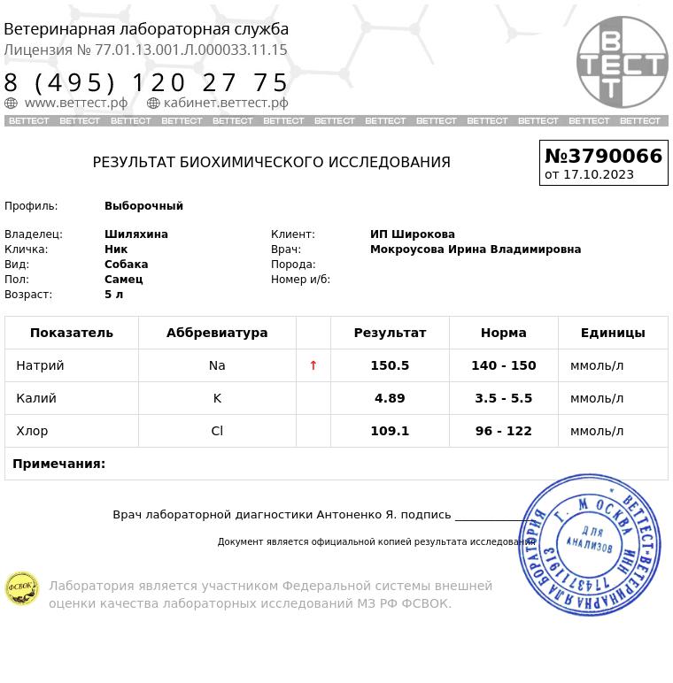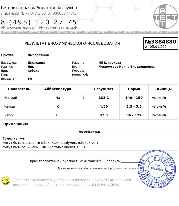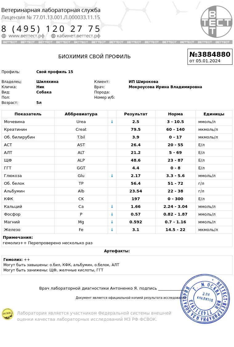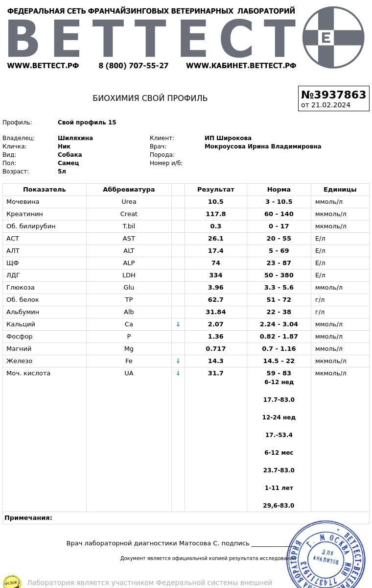 Ладно Тёма, можно списать на последствия кастрации, а у Ника почему кальций снижен? Была же норма?