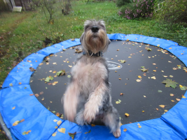 На батуте))) это уже утро...туманное и немного хмурое, что ни разу не сказывается на настроении милой шилопопки)))