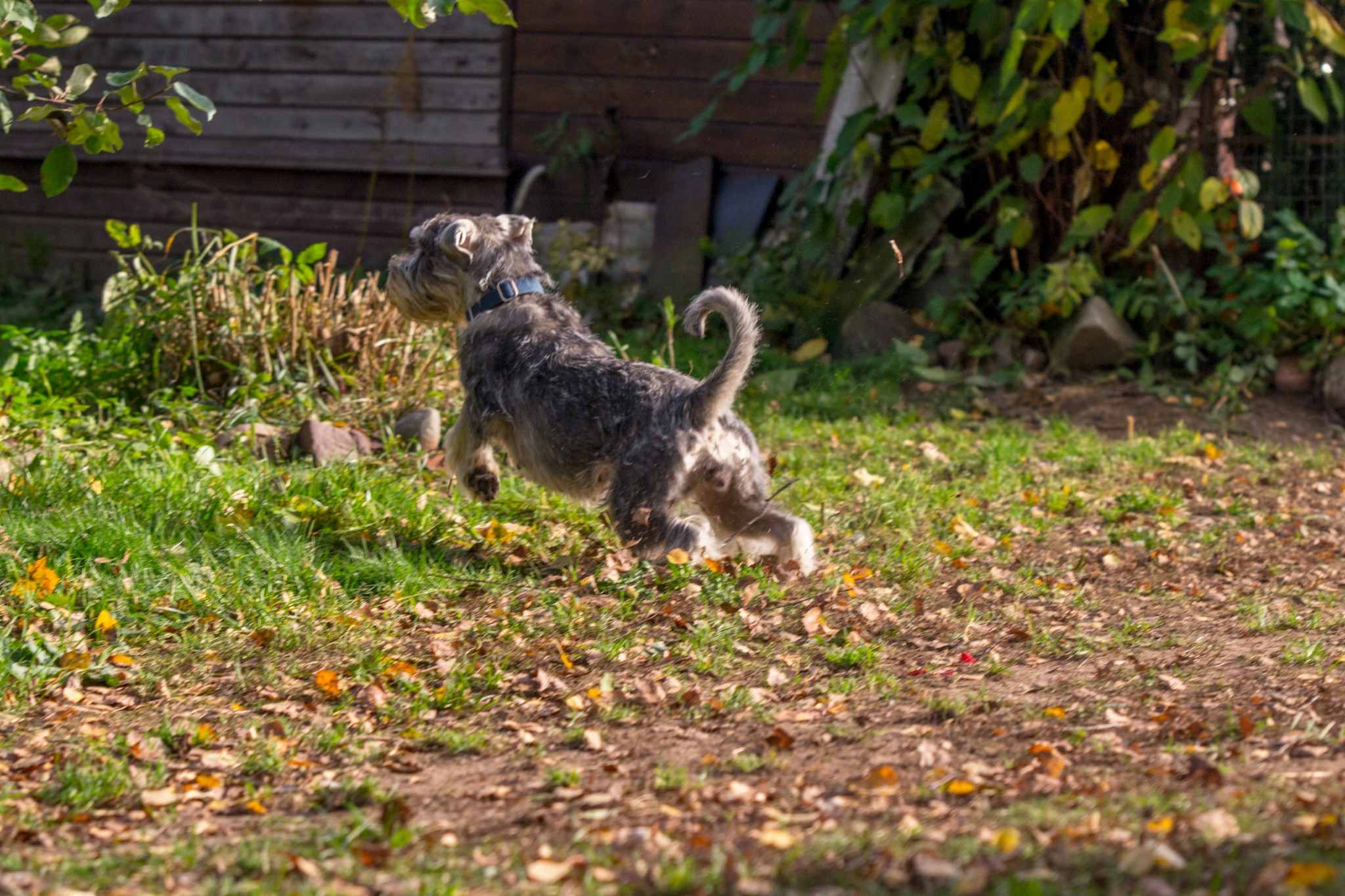 -Скорость-это наше ВСЁ!!!! Носится пулей и даже напарник по бегу не так уж и нужен))) Достаточно кого-нибудь тяпнуть за- ножку,ляжку,шею,бороду, морду, уши и далее по наличию, услышать вопль"Ррвау!!" и тикать вокруг дома со скоростью пули кругов....да пока не воткнётся в кого -нибудь)))))
