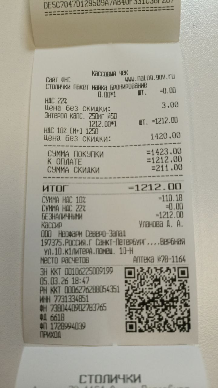 Чеки за Энтерол, эхо сердца, анализ на гормоны и кт онкопоиск