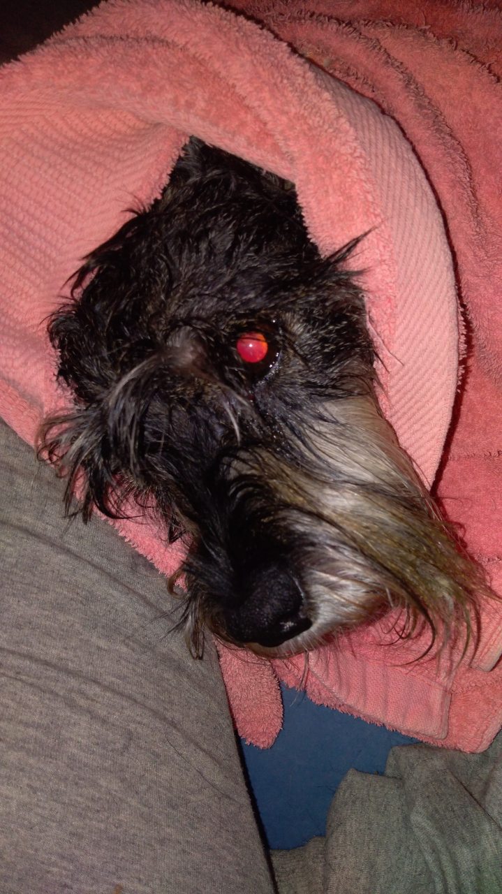 Алена совершила смелый геройский поступок - постирала Капитошку. Собаке было очень страшно, но отдавать людям грязную, которую будет невозможно помыть в ближайшее время из-за нового стресса как-то неправильно