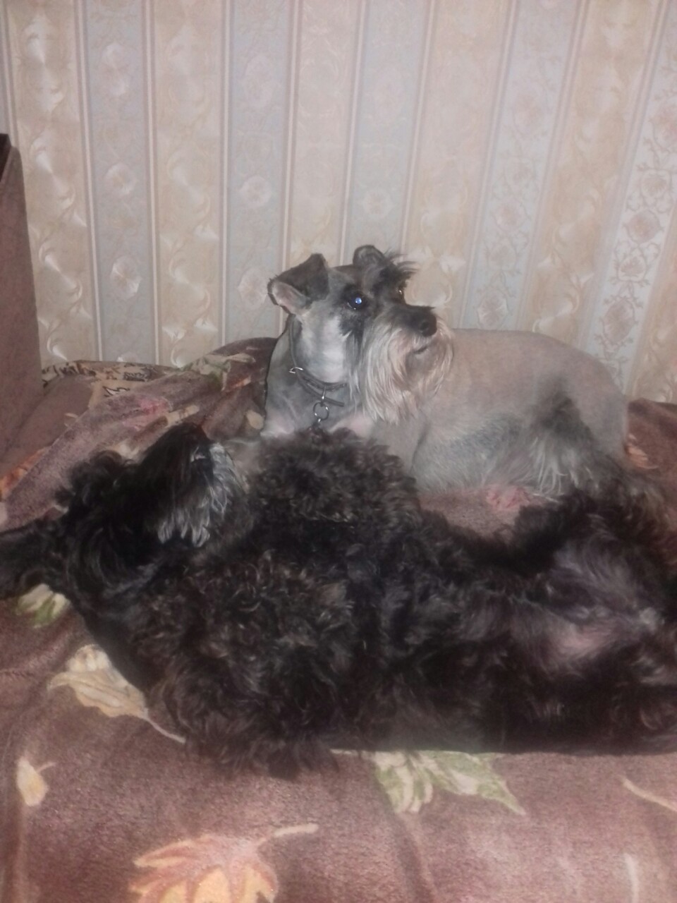 С Шанти водили хоровод (моя в течке и периоде любви ко всему живому), потом пошла и залегла на ее лежак