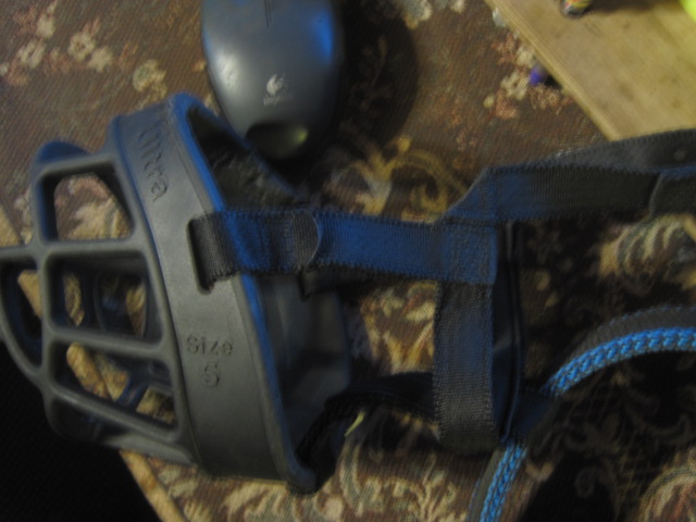 Багир... я не сразу заметила, ремешок налобный отгрыз и на самом намордасе оторвался... в первый же день.....