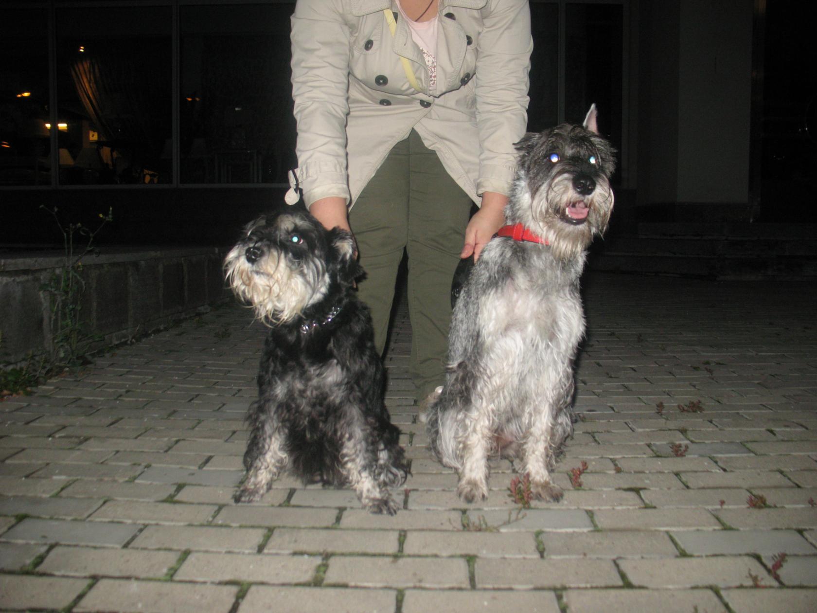 Увы, двух собак одновременно не получится. У меня старшая цверга, а младшая миттелюшка Сначала я привязываю миттелюшку, занимаюсь с цвергой. А потом цверга на привязи, а миттельшка занимается. Цверга просто не дает младшенькой, что нибудь делать.