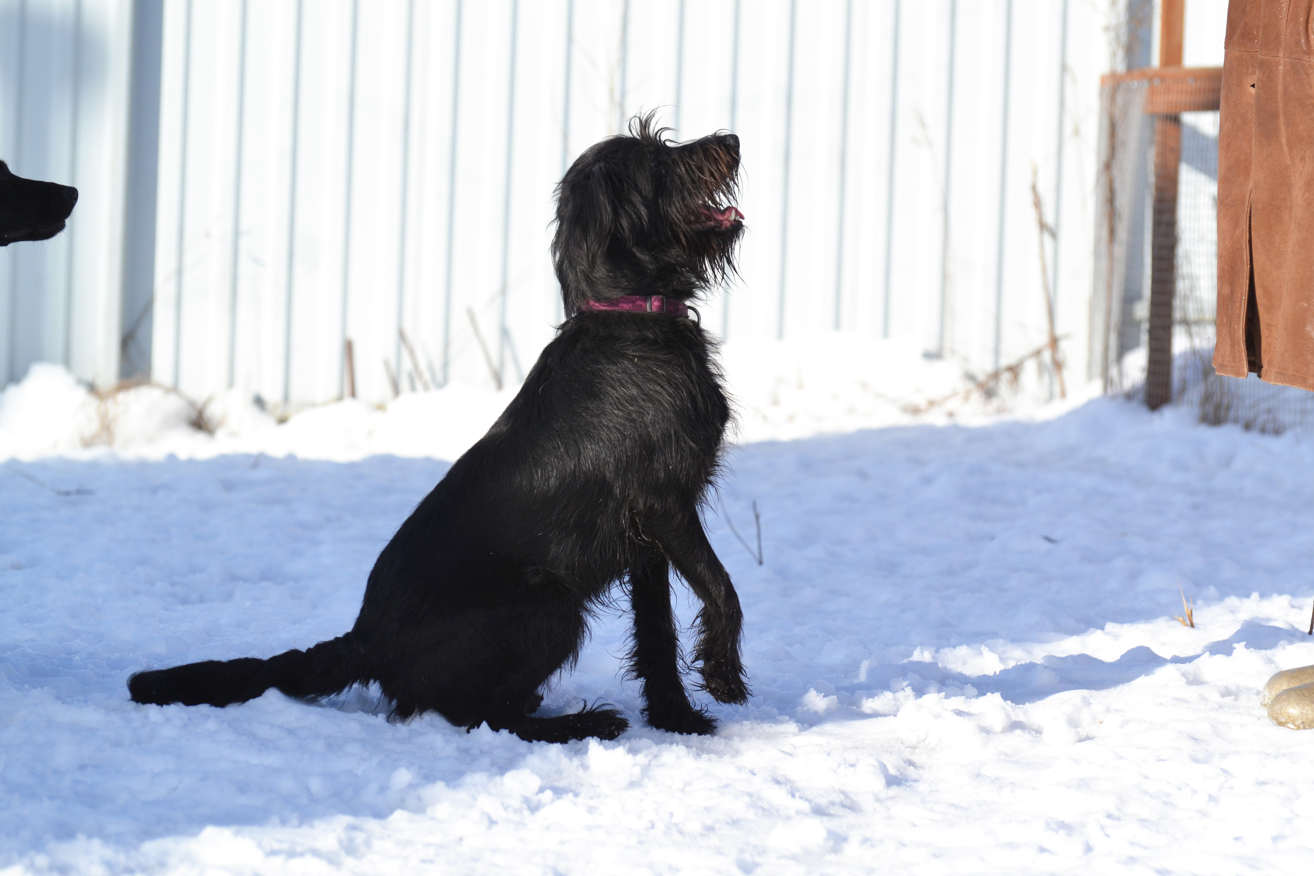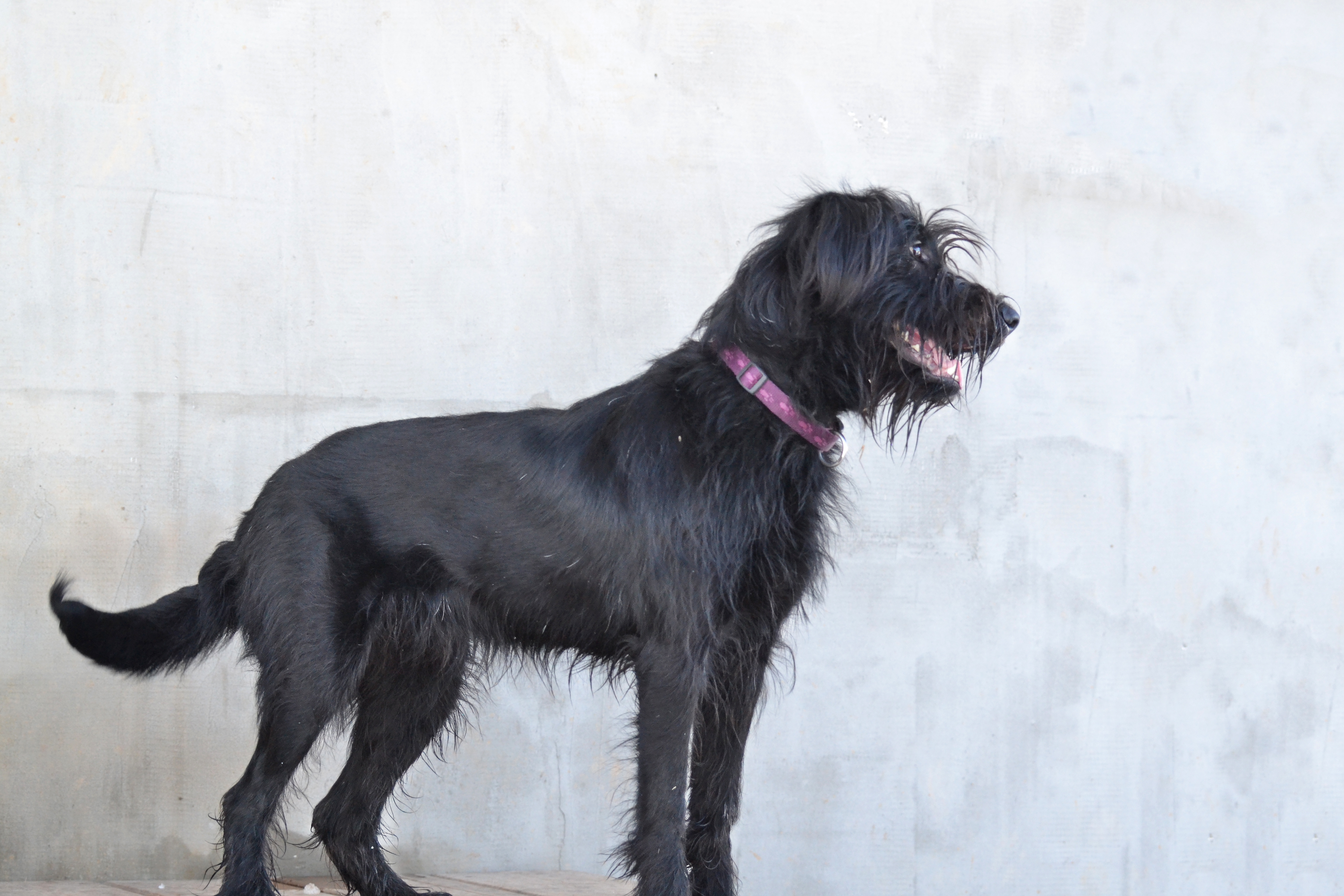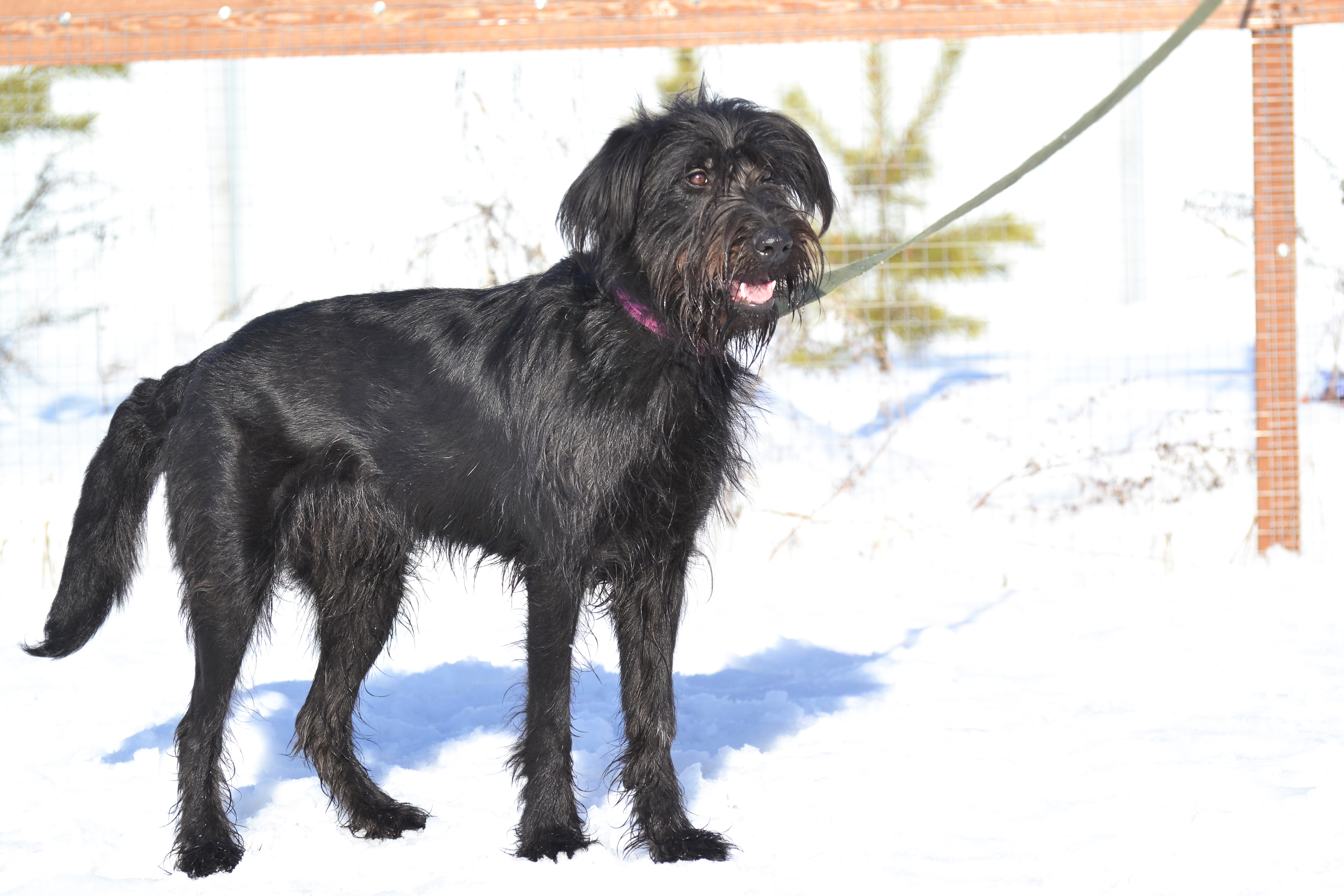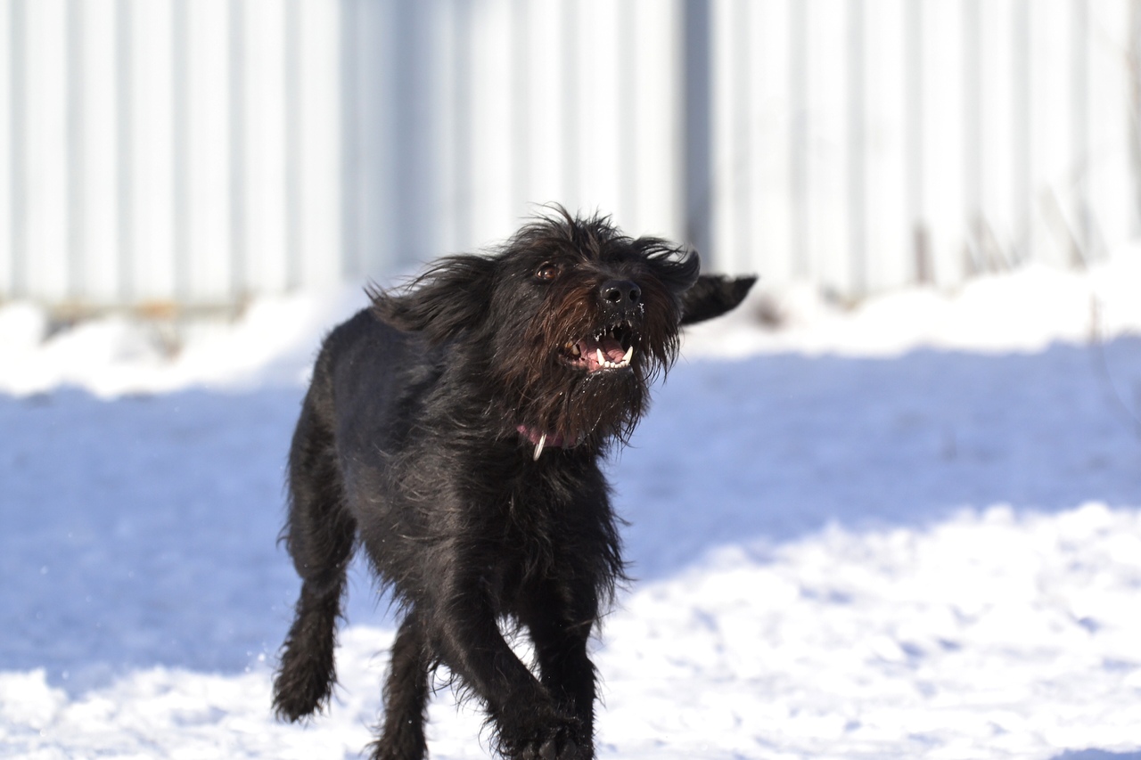 Бора - ростом чуть ниже ризеншнауцера, поскольку она метис. Ей 2 года. Бора не просто любит гулять и играть, а делает это с таким азартом, что заражает им всех вокруг (и людей, и собак). Бора будет прекрасным товарищем для игр ваших детей (конечно, лучше, если детки уже чуть подросли, поскольку энергия Боры может их просто-напросто опрокинуть). У Боры отличный аппетит. Она хорошо остается дома одна. Нормально ладит с собаками. Умеет сносно ездить в машине, хотя и не любит. Бора не боится салютов, грозы, резких хлопков, чужих людей. Она, кажется, вообще ничего не боится. Кто нужен этой собаке в качестве хозяина? Энергичный человек, который хочет завести себе собаку-компаньона. Бора - невероятно компанейская. Она вообще-то за любой кипиш, кроме голодовки.