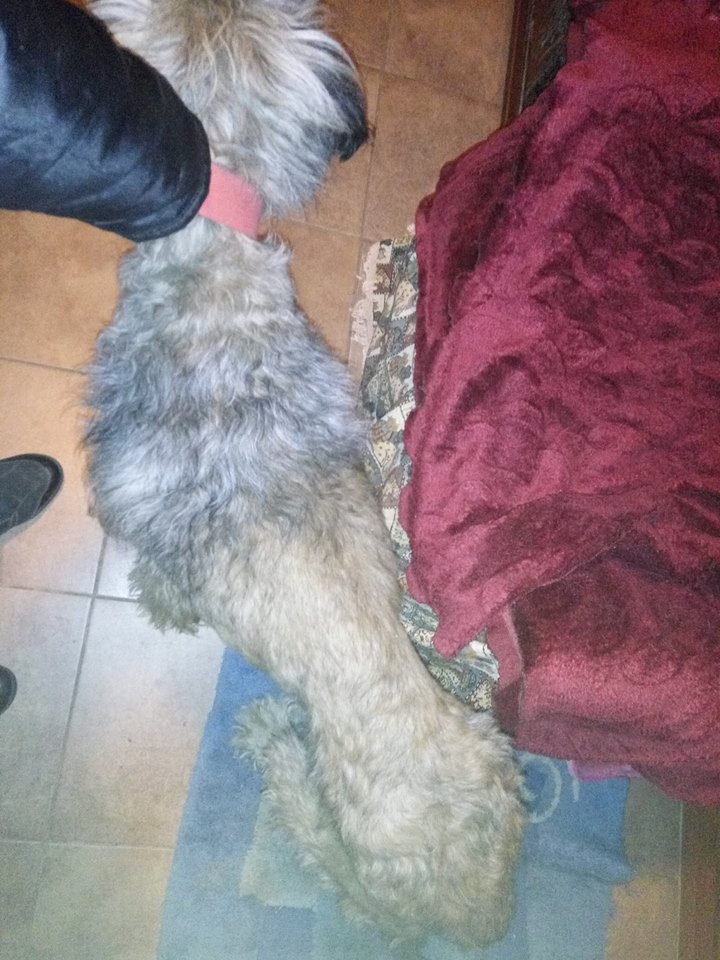 С шерстью ничего критичного,это он так обстрижен до половины, вероятно ножницами - таким попал в приют.По коже проблем пока не обнаружила.
