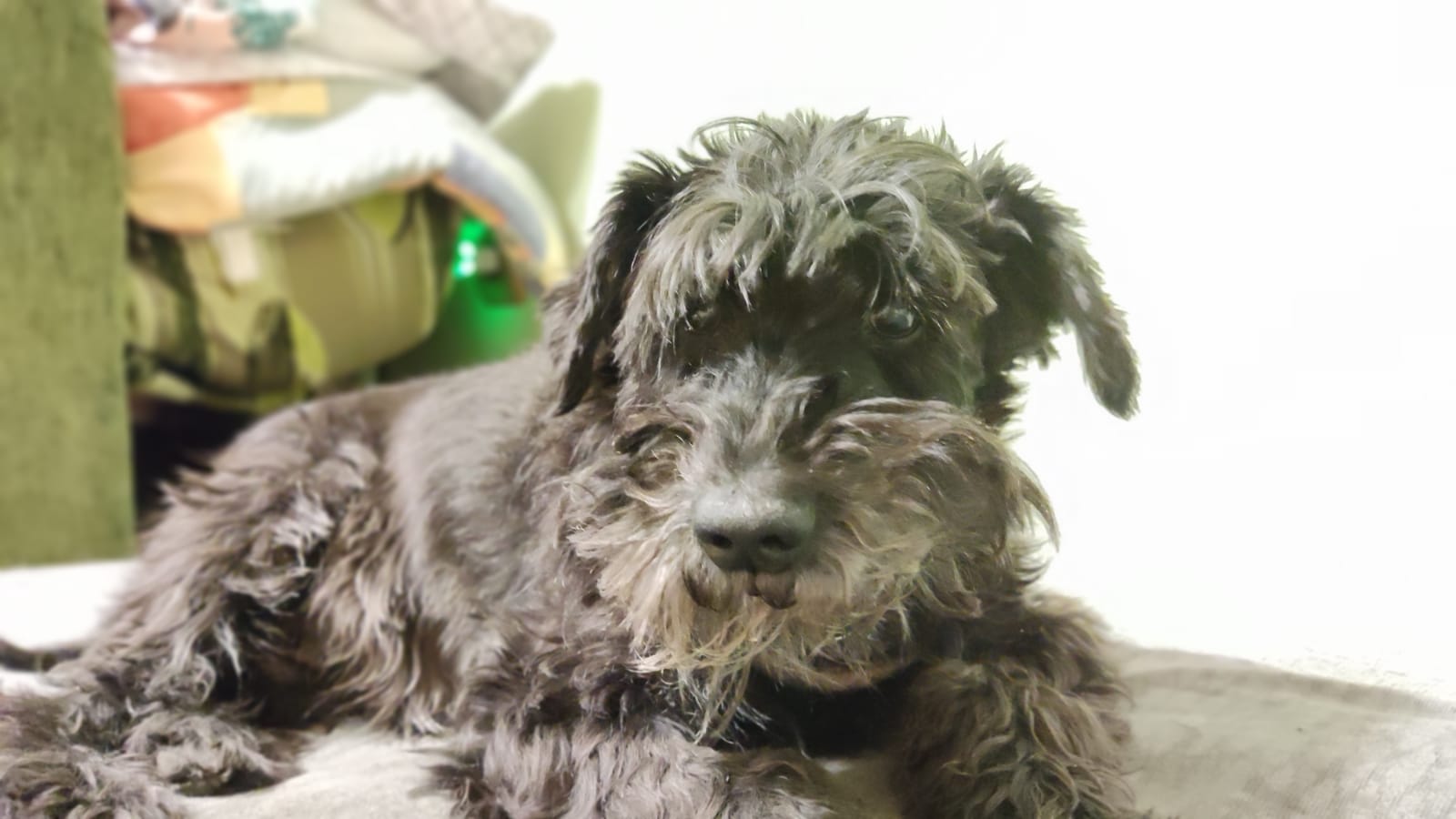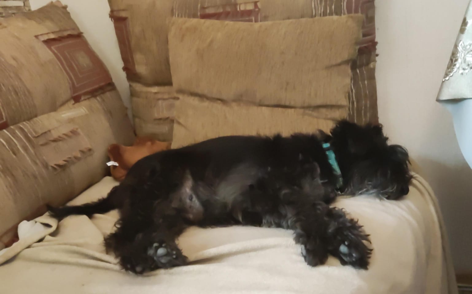 Морду чесать не даёт, больно. Поэтому колтуны выстригать пришлось
