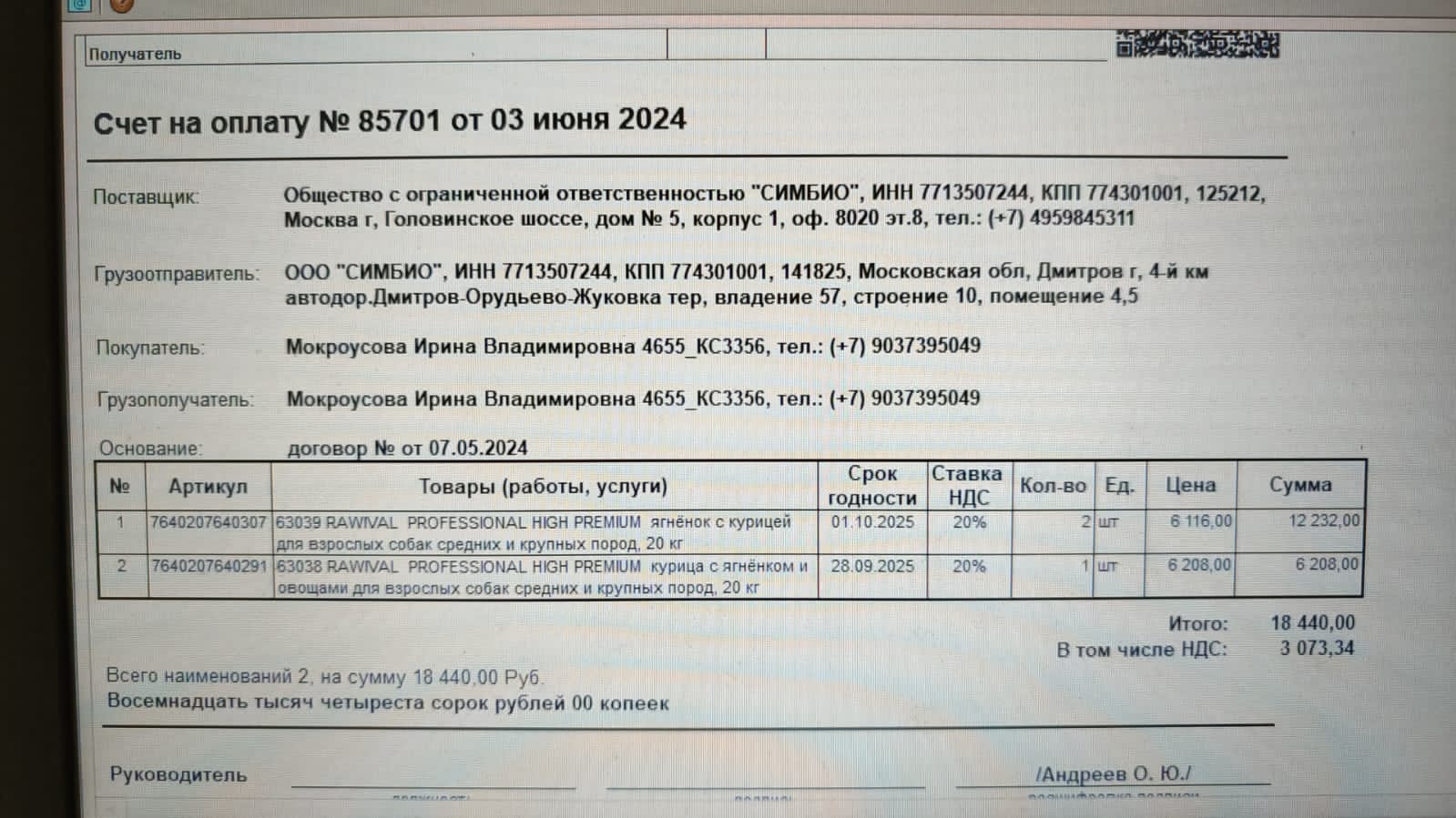 Re: корма, вакцины, лекарства в ФПШ Москва