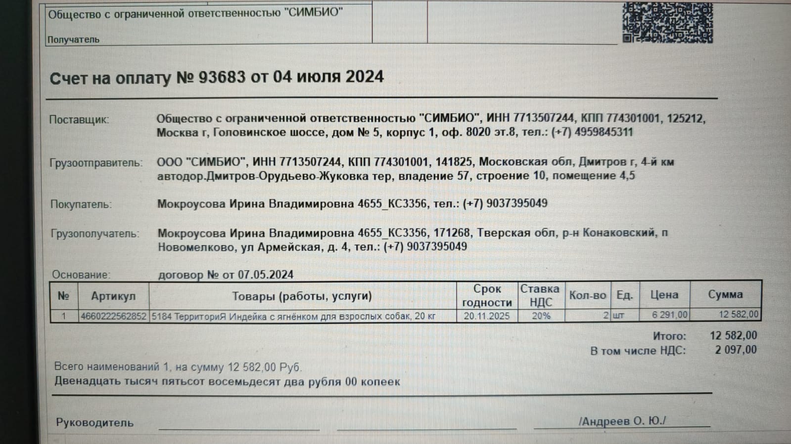 У меня вопрос по корму, переданному для Бориса второго....