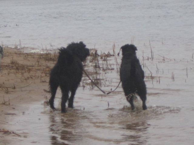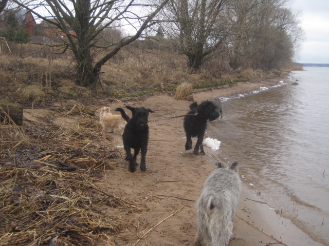 Лёля сегодня ловила лапами волны на предмет познакомиться поближе,понюхать)),а эти скользкие сволочи утекали из- под лап, что бы тут же плеснуть холодной водой в нос, если бы Лёлька была человеком -она визжала бы от счастья. Сегодня собаки пытались отправиться в...Астрахань наверное,на остатках льдин)))) но гадские льдины ломались под ногами, никого не хотели катать и пугали Лёльку уходя на дно под её ногами на дно. Благо всё это у берега))))