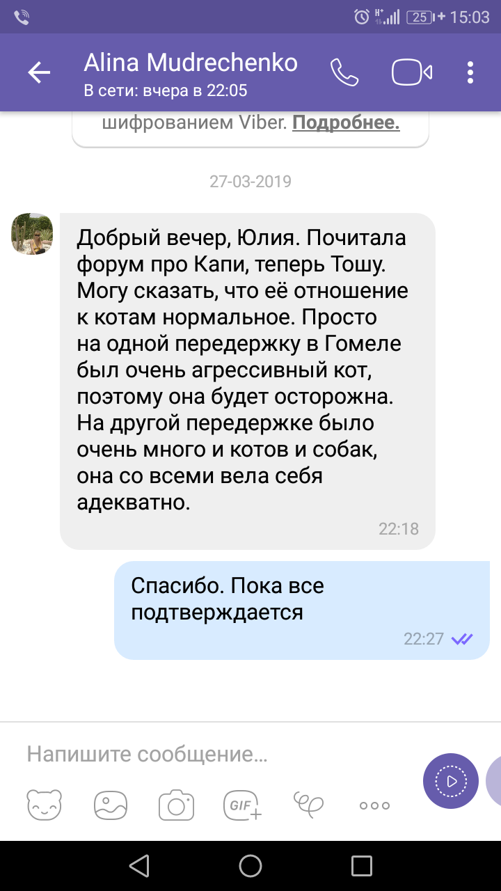 мне написала волонтер гомельский, которая занималась Тошей, о ее отношении к котам: