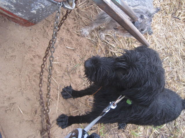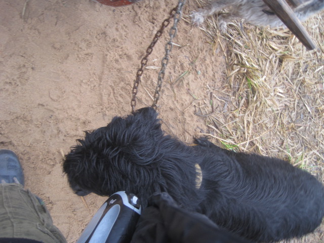 Четыре бравых "матроса" сопровождали на прогулке СВОЮ прекрасную принцессу...и прогулка, не смотря на ураганный ветер ,дождь и слякоть,обещала быть......Мы успели едва спуститься с горушки как появился мотоцикл.....и Шаман сопровождавший хозяина.....