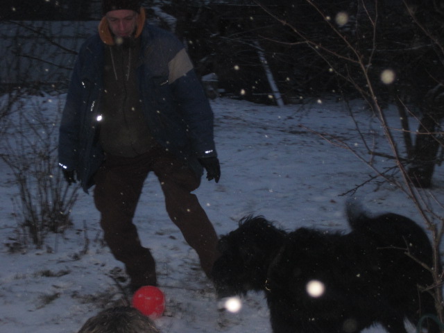 Парни дерутся- -Генка тяпает за задние лапы, Тёма пытается задавить весом ,Шкипер прыгает вокруг выискивая куда вцепиться, а Мух охраняет Лёлю на ближних подступах, путаясь у неё под ногами и вереща благим матом(и это притом что с Шаманом мы поддерживаем нейтралитет и не калечим друг друга) Шаман пытается не уронить честь и достоинство, а Лёля рвется заступиться за прекрасного вьюношу. причитая при этом-