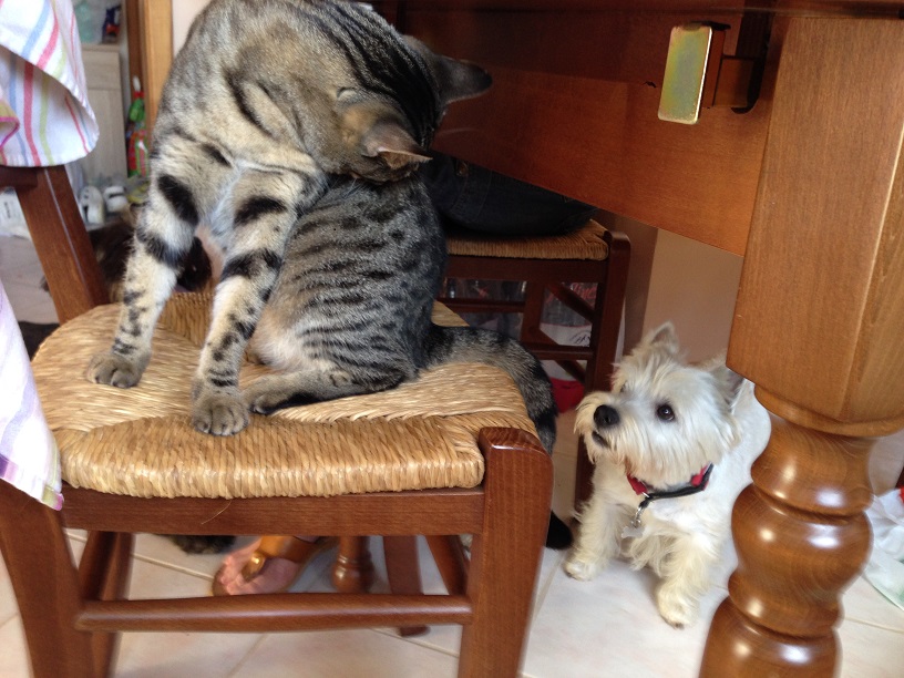 Самое странное, что Феня чуть не в первый раз запрыгнула на стол по команде, а не до неё.