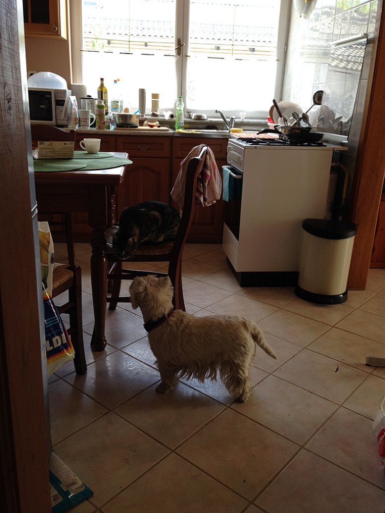 А если кто-то умудряется просочиться сюда, то он умудряется возлежать на всех стульях одновременно и при любых попытках сесть за стол орёт благим матом и бежит содержимое лотка по туалету рассыпать
