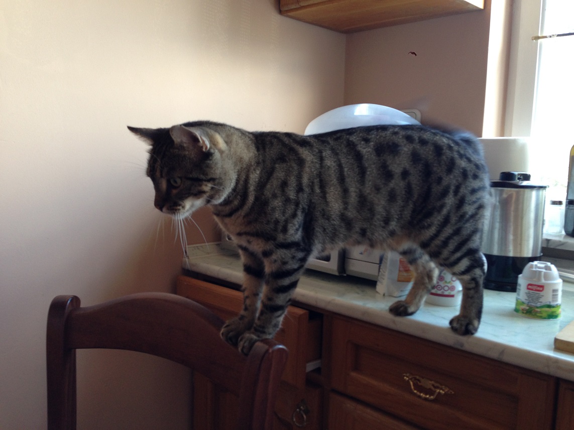 В общем, ситуация. Пришли к нам гости (типа новоселье отметить) и само собой заняли все стулья на кухне. Кот очень огорчился и теперь гостей на кухню не пускает