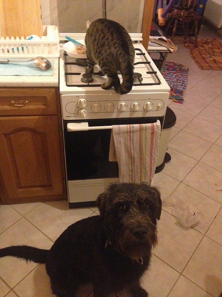 Догадываетесь, какая единственная собака решила запрыгнуть со стола на бум?