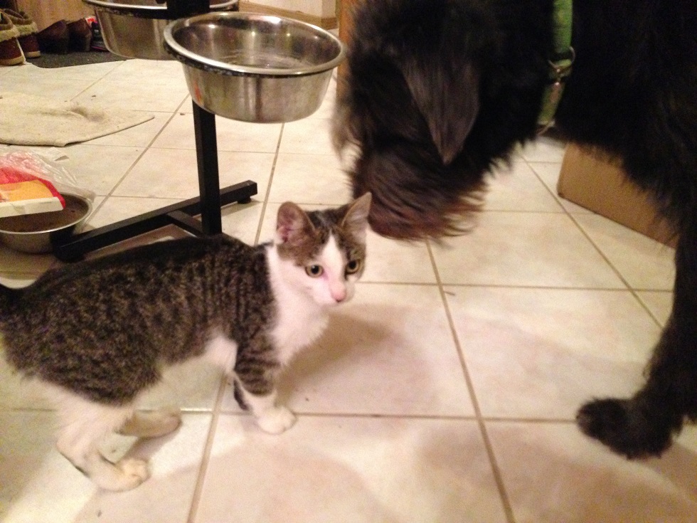 Сначала Пончик решил научить мелочь уму-разуму. От методов воспитания я пребывала в полнейшем шоке и считала, что бедной кисоньке грозит смертельная опасность.