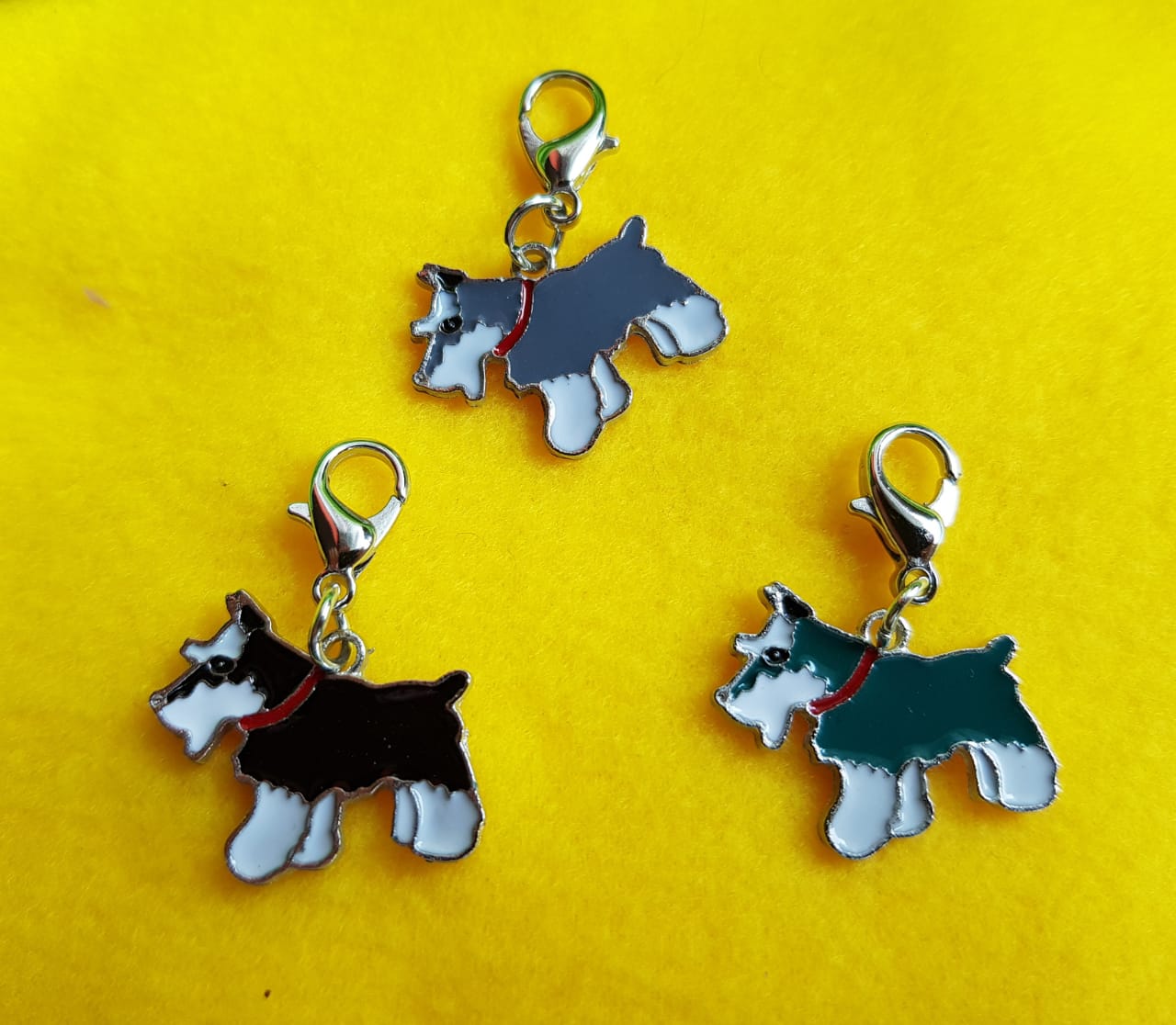 Куплено 30 подвесок (брелков) размером 2,5*2см. Фото ниже. Шнауцер черный, шнауцер серый, шнауцер серо-зеленый (на фото был голубым