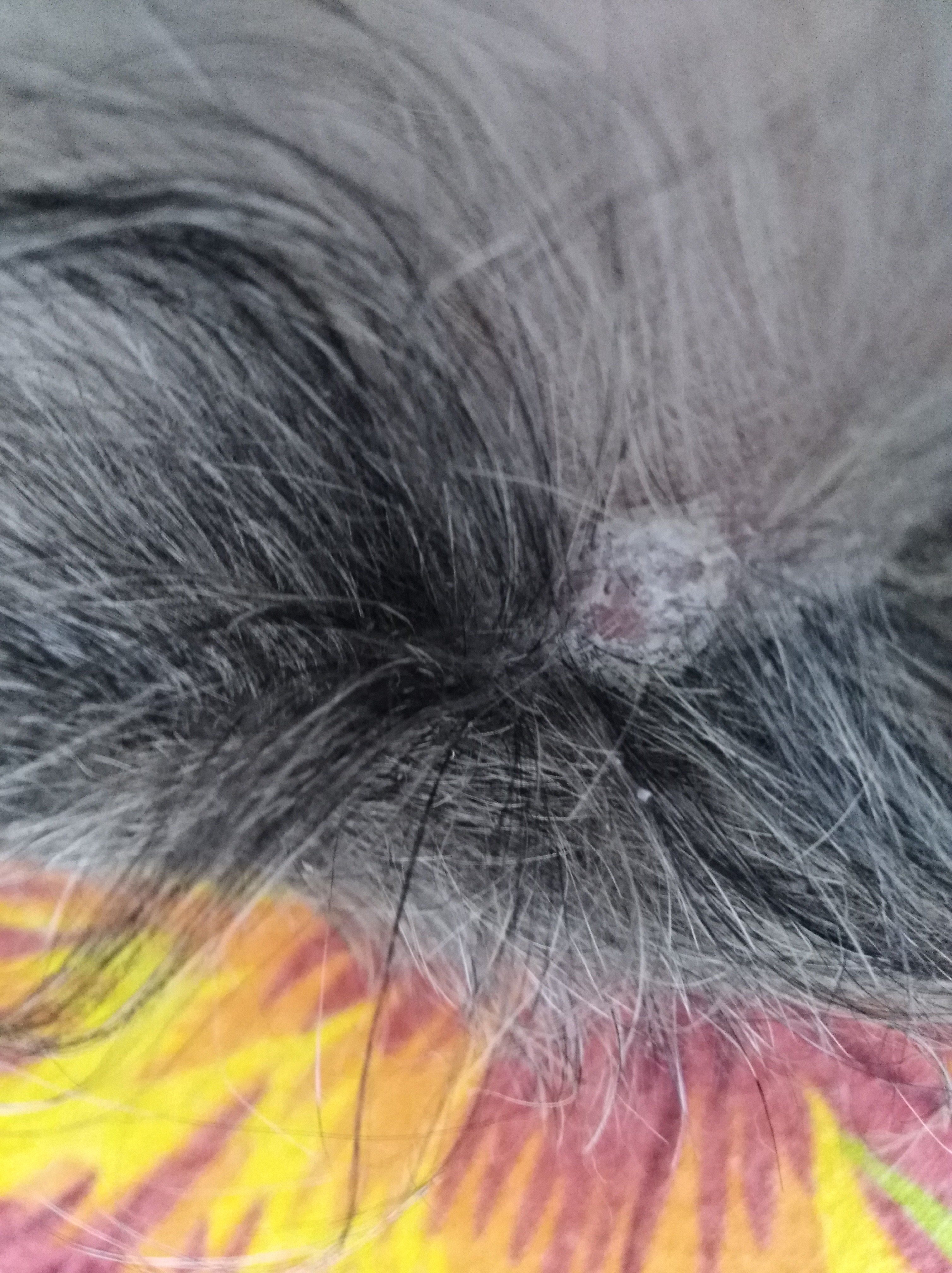 Тут сложно, я по фото не скажу... но если это одно место, я б помазала хлоргекседином и микосептином или микозалоном, с захватом здоровой кожи. Но если не поможет, вся картина смажется:(
