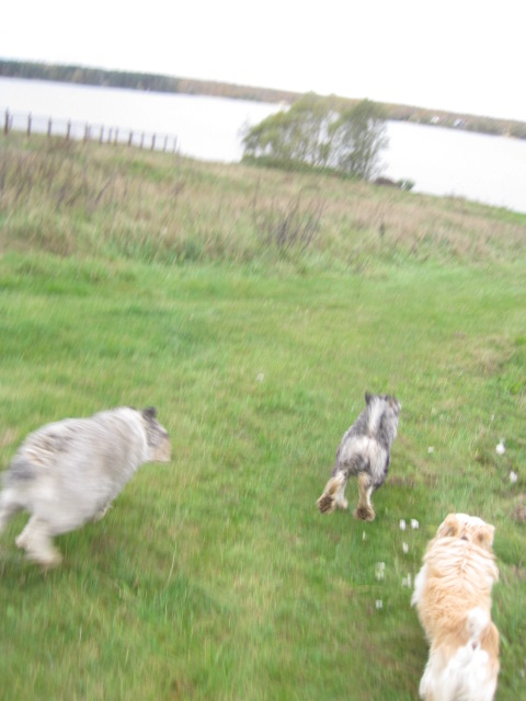 собираемся на прогулку идём гулять БЕЗ ПОВОДКОВ!)) летим к реке,не смотрите, что Генка приотстал- ровно через секунду он обгонит Шкипера и перегородит ему дорогу))) дела собачьи