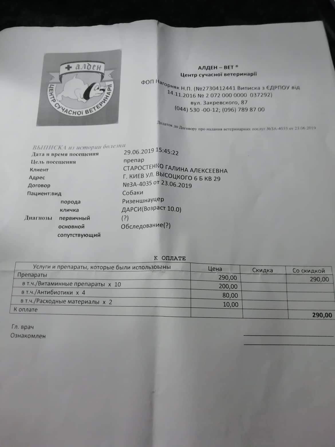 Оплатила передержку с 25.06 по 04.07 - 400грн