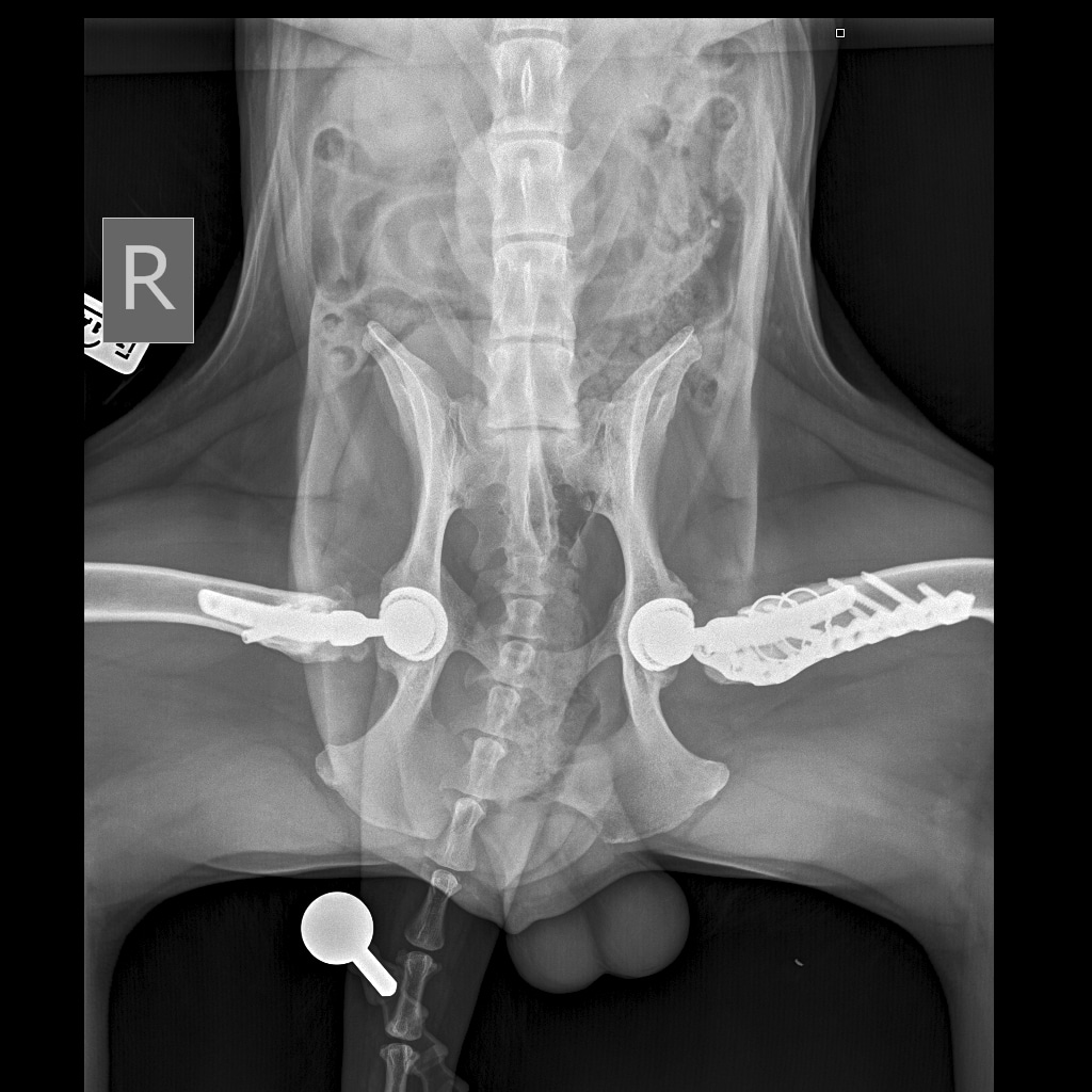 С первой операции на правой лапе 7 месяцев, со второй на левой - четыре.