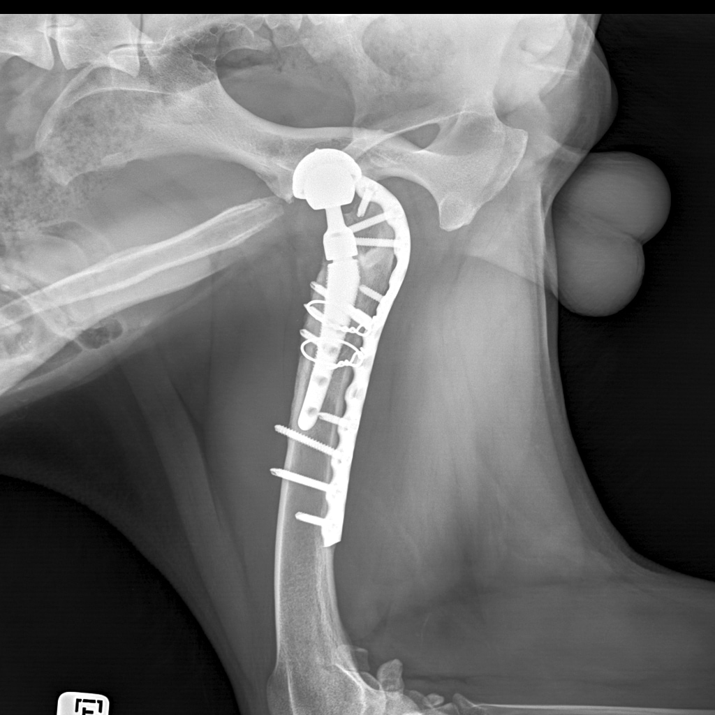 А вот если увеличить изображение ножки ( та часть протеза, что в бедре), то можно увидеть признаки воспаления.
