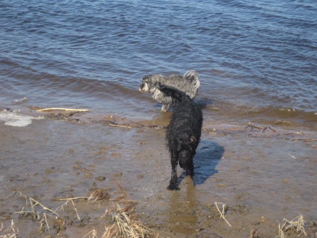 Есть и ещё один вид рисковых людей...этого парнишку вижу второй день...почему ему не каталось зимой??-не понятно.....ну да пусть за него родители переживают.... А мы гуляем по бережку,мальчишкам без разницы носиться по ледяным просторам или по траве...влажной подгнившей, пахнущей мышами и всякой другой живностью....Нам хватает радостей и без риска для жизни)))Охотиться на полевую живность по не вполне растаявшим луговинам-радость особая))) как часто под не растаявшим снегом прячутся ямки и рытвины, и как весело попав в такую ямку лапой пропахать мордой по полю метра три, черпая на ходу землю, траву,снег, как весело пронестись по бурелому и украсить себя прошлогодними репейниками, травинками и веточками, понатыкать их в себя в самые труднодоступные места, а потом долго их выкусывать и почёсываться))) А ещё очень весело лопать снег вчетвером , откусывая по чуть-чуть от каждого сугроба, и улыбаться весеннему солнышку