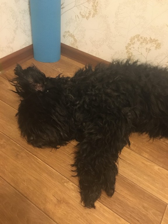 Диана говорит, цверг возрастной, 8+. Приятный, спокойный пес. Скорее всего, жил как трава в поле. Очень привязывается к человеку.