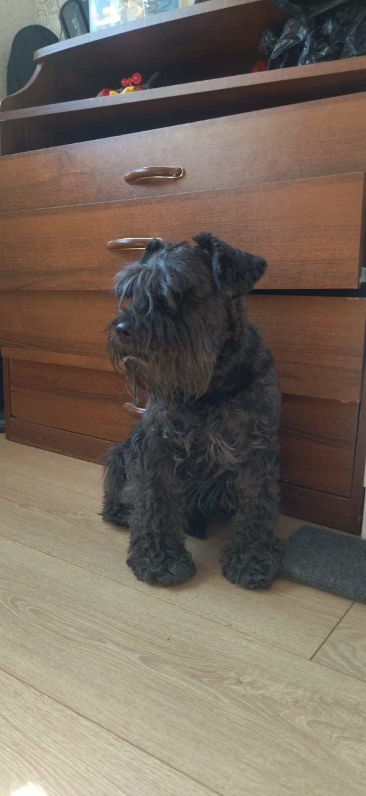 В Орехово -Зуево нашли кобеля черного цвергшнауцера с купированным хвостом. Его спасительница Антонина приютила парнишку, сдали анализ крови. Объявления разместили по всему Орехово-Зуево, но пока полная тишина. Только один мужчина написал, что он спас его, когда тот провалился в р. Клязьма.