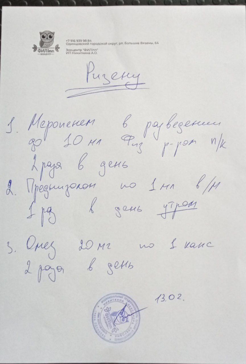 По Герману. После консилиума врачей решили сегодня не оперировать, так как высокие риски не проснуться. Оставляем его на 10 дней на лечение под наблюдением врачей и через 10 дней принимаем решение по операции. Возить его на зоотакси в Тульскую область по 13000 -15000 тысяч и зоогостиница по 2500₽ в ...
