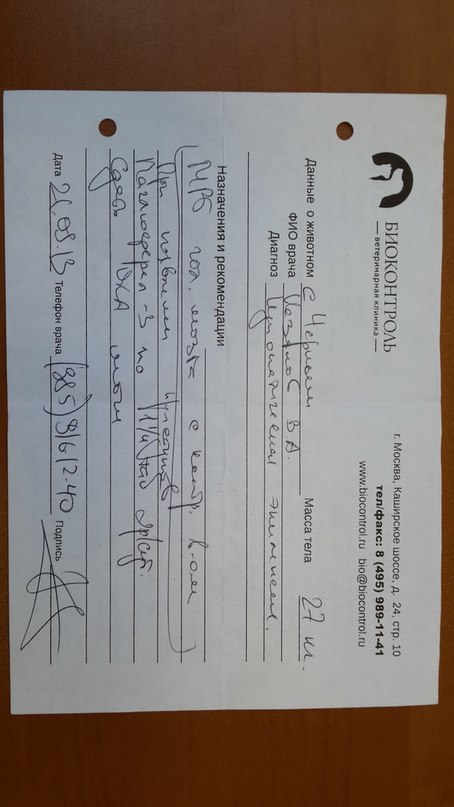 Результаты обследований у бывшегот хозяина, попробую достать. На передержку нет средствdar писал(а):Психолог