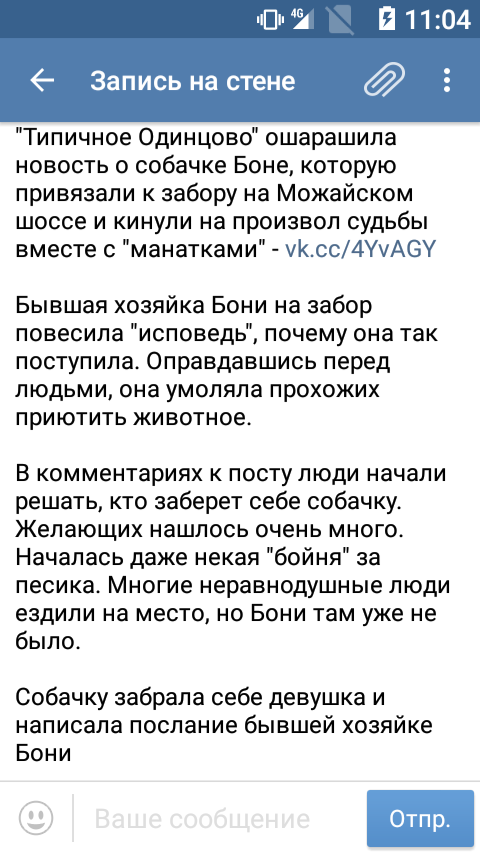 я очень рада, что мимо собаки не смогли пройти и взяли..