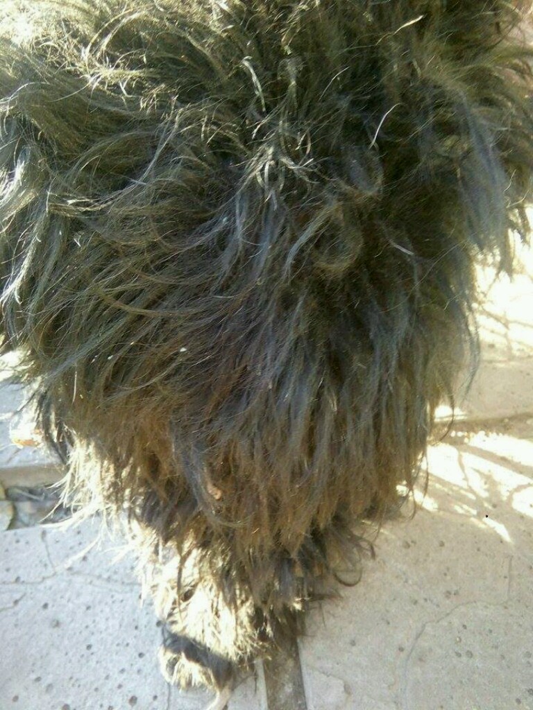 Сколько он уже скитается по улицам, бедолага?! На теле - панцирь из шерсти и кости.... :( Лишь бы не жрался, в порядок постараемся привести.