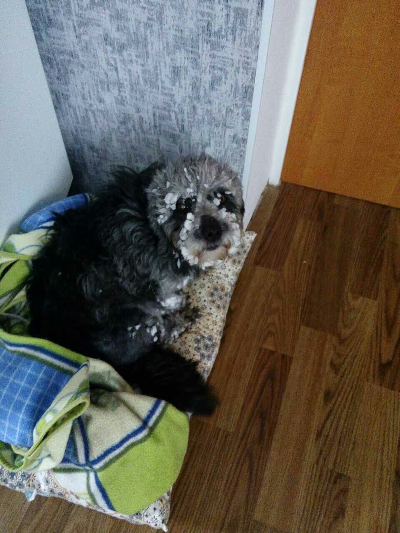 Люська теперь похожа на енота!Голова и хвост особенно!)))Очень любит качаться в снегу,как малое дитя.