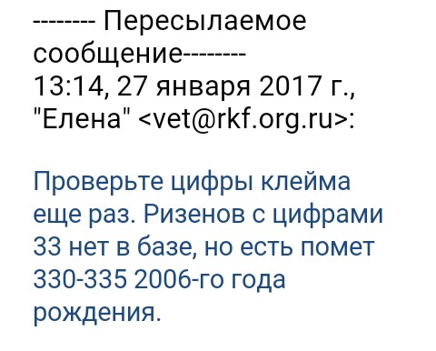 Пришёл мне ответ на запрос в РКФ по клейму.