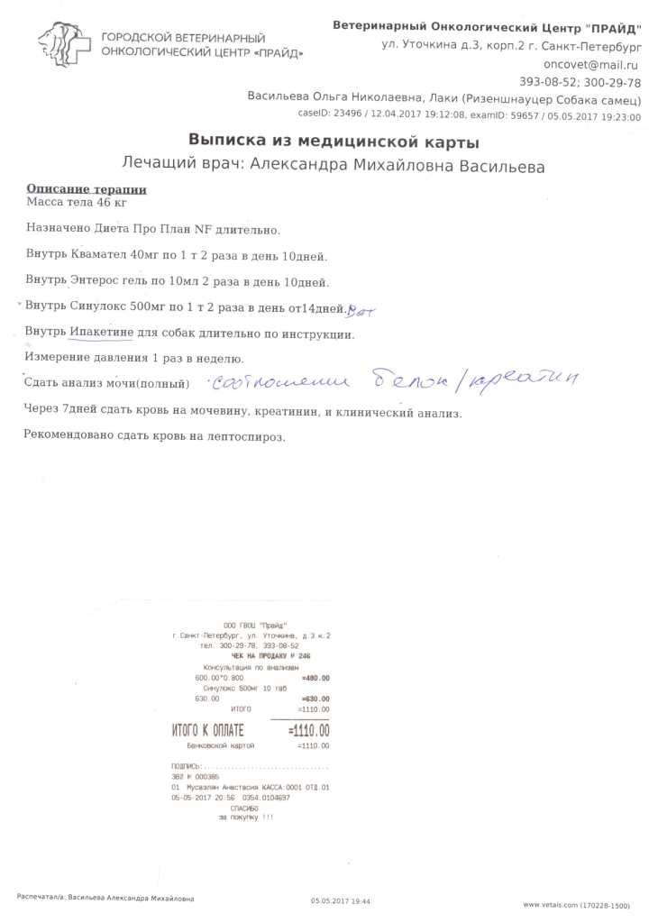 Позавчера Лаки вырвало за день три раза. В результате я отменила временно пироксикам и эндоксан. Вчера заскочила к Каблукову, он подтвердил правильность этого решения. Вчера и сегодня рвоты не было, но сегодня заметно побурела моча...((( Хочу завтра с утра собрать и срочно сдать анализ.