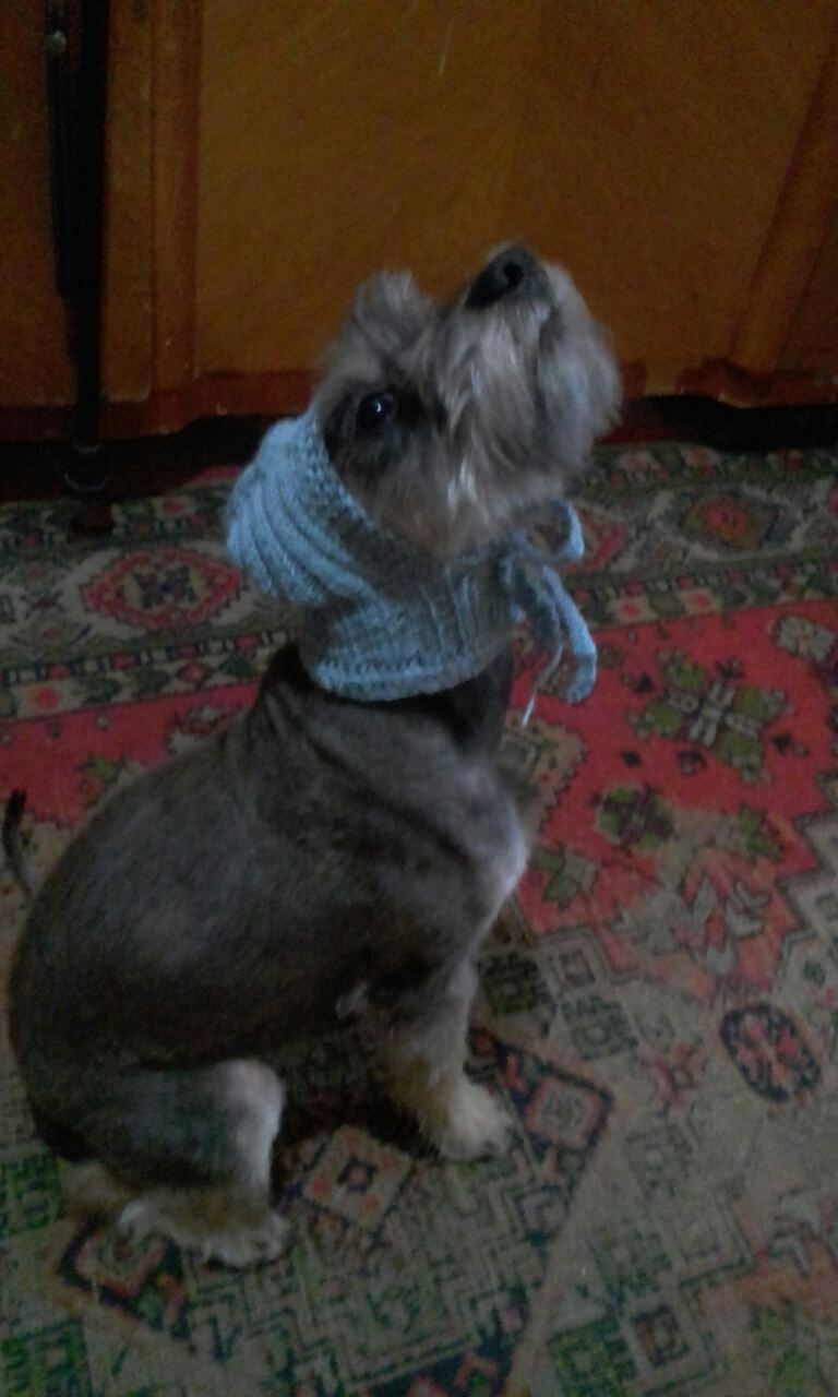 После триминга за ушами появилось раздражение, поэтому Марина связала шапочку. Вот как мимо такого кто-то пройдет, не заметив :laugh: