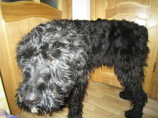 Ризен 6-ти лет Балу дома! Удрал от хозяев и примкнул к собачьей свадьбе, за что видно и получил по шее. Собака с клеймом и родословной. Его искали, а в интернет не додумались влезть. Подруга семьи увидела . Но побегаец пришёл домой сам!